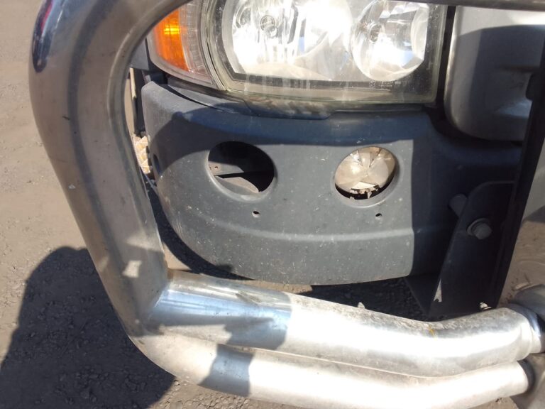 The truck arrived at The One Stop Truck Shop with a severely damaged front grille.